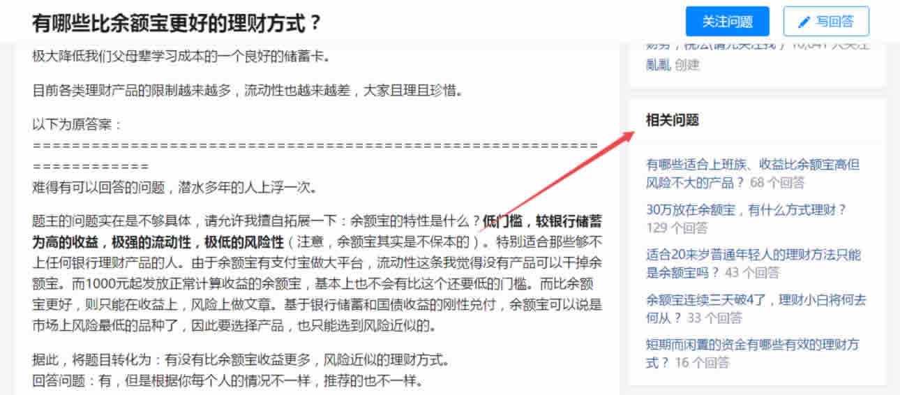 为什么我会选择说“相关问题”?因为有些大问题已经存在很久了,属于红海类问题,首赞往往上千上万赞,不去弄到首页的位置,根本无法继续获取流量。