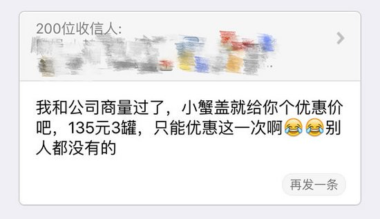 第二种群发玩法,是“假装发错”。比如给你们看这样一条群发: