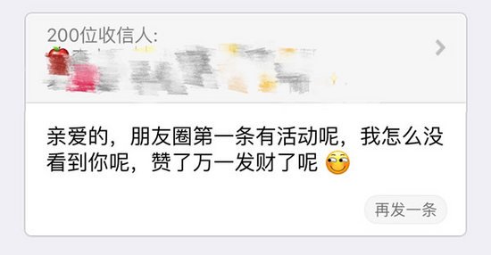 如上图,这样的群发是不是也天天有,虽说我至今也没搞明白这帮天天求点赞的到底是图些啥(也没兴趣明白),但既然有这项行为的存在 ,一样有必要给点建议改进一下。比如你们看我下面一条群发: