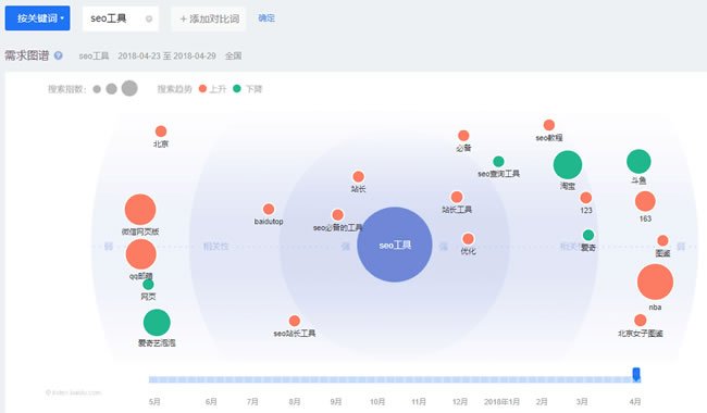 上图包含着巨大的信息量,2018年4月份的时候“SEO工具”这个词最相关的几个词是站长工具、优化、站长、seo必备工具、SEO查询工具、SEO站长工具等,有了数据你就知道用户需要什么,做页面的时候应该要做哪些内容的聚合才能获得好的排名。