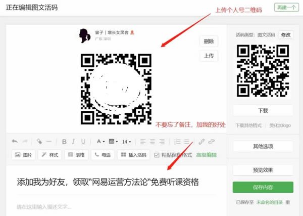 7、登陆草料后台,更换新的个人号二维码继续裂变