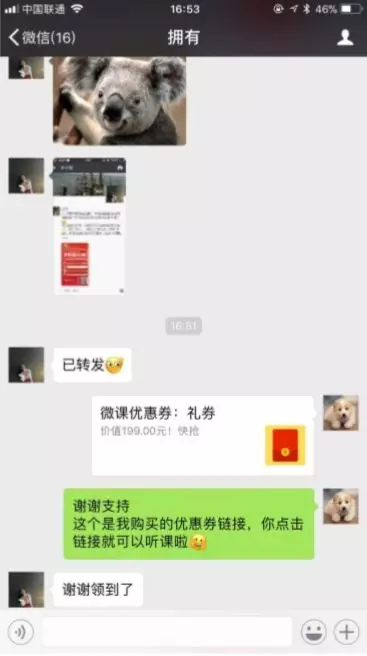 当然,还可以引导下用户行动,例如再加一句:转发后,麻烦截图发给我下哈,我发听课券给你哈