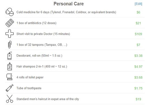 假设身体不错,不常生病,个人护理的费用只有洗漱用品,卫生纸,理发等消费,每月约$20美金(132元)。