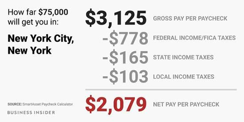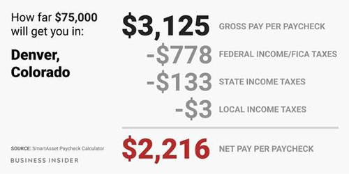 实际上,年薪7.5万美金的收入,高出美国人均收入的30%。但是,由于所在地不同,在扣除联邦、州、地方政府税款后,同样的7.5万美金年薪打到你的银行账户里时,看起来却会有很大的不同。
