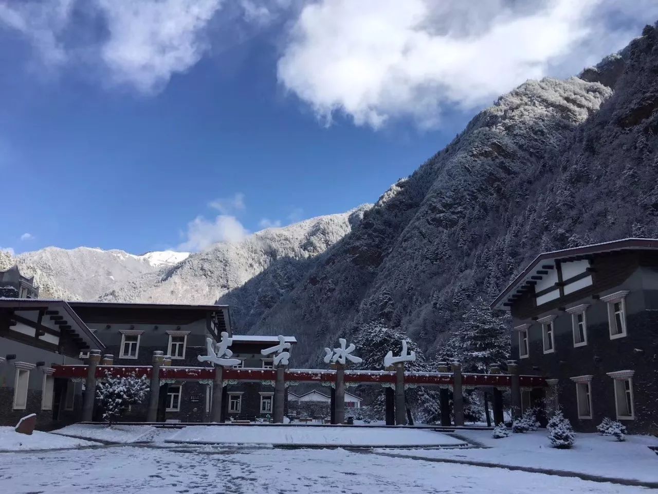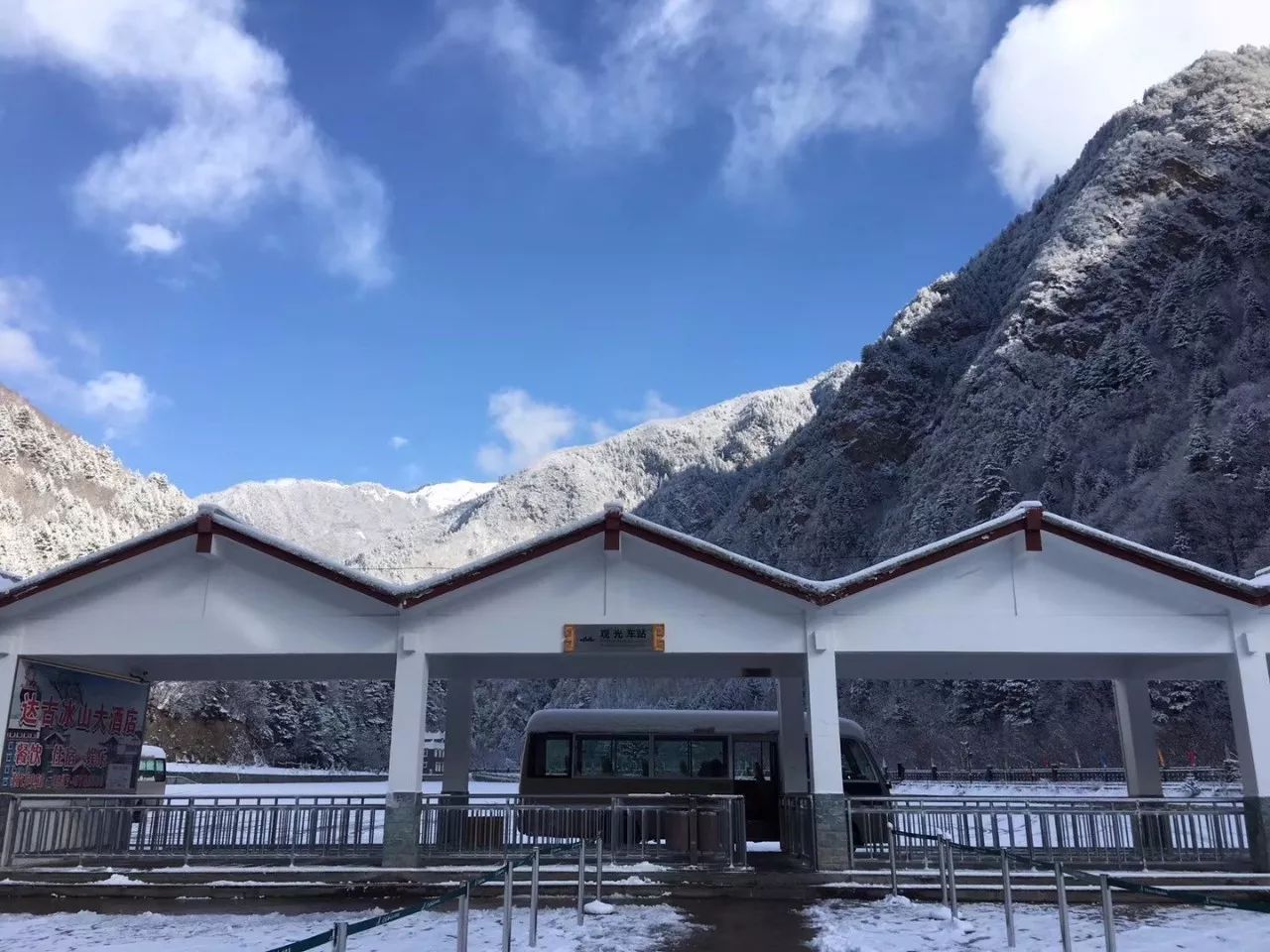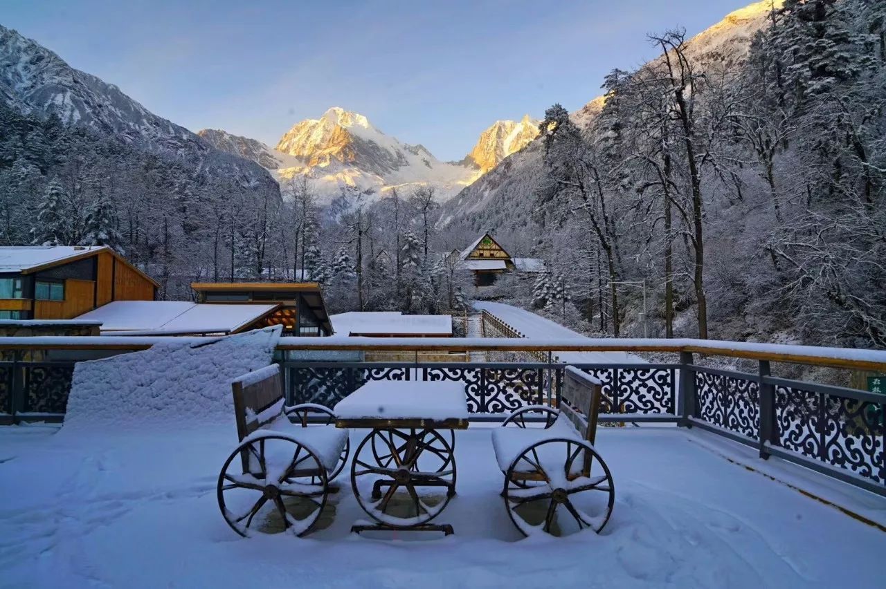 一夜大雪,海螺沟的世界被白雪覆盖,宛若遗落人间的冰雪王国。