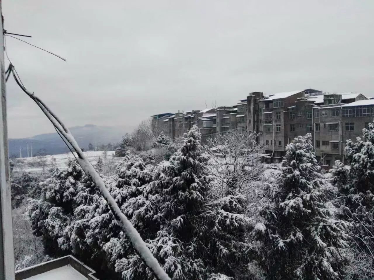 除了阿坝州、甘孜州,距离成都就1小时的雅安,今天也加入到了晒雪的行列中,大门口的雪,请看图……