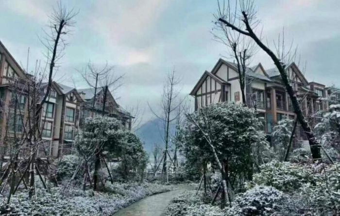 碧峰峡景区内,被大雪裹得严严实实的,这里可能是距离成都最近的初雪地了。