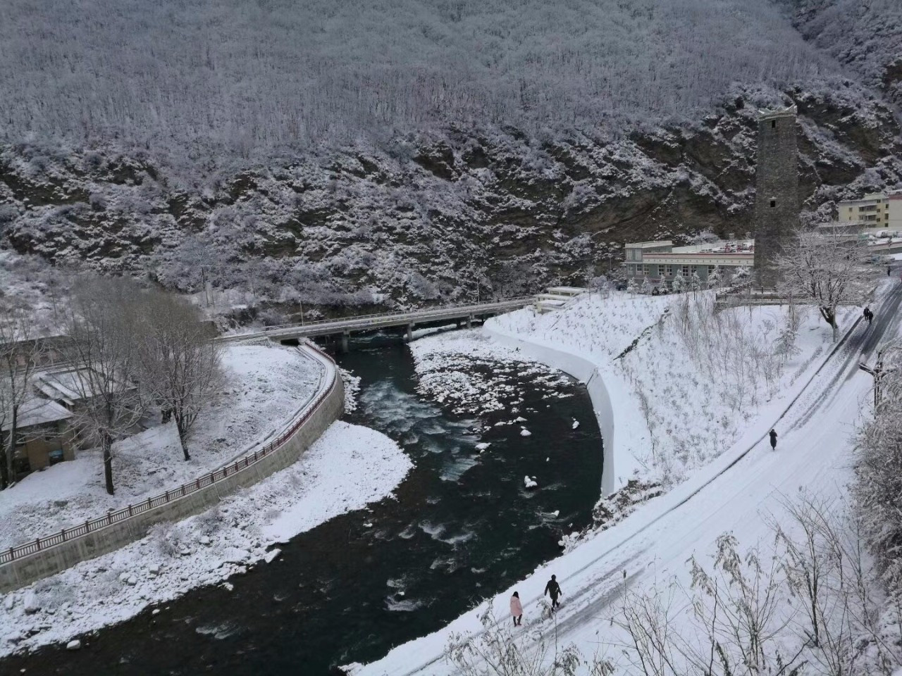 河道旁,马路上,全是白茫茫的一片,一夜变白的魔力,就服2018年这场雪。心动没?这就是黑水。