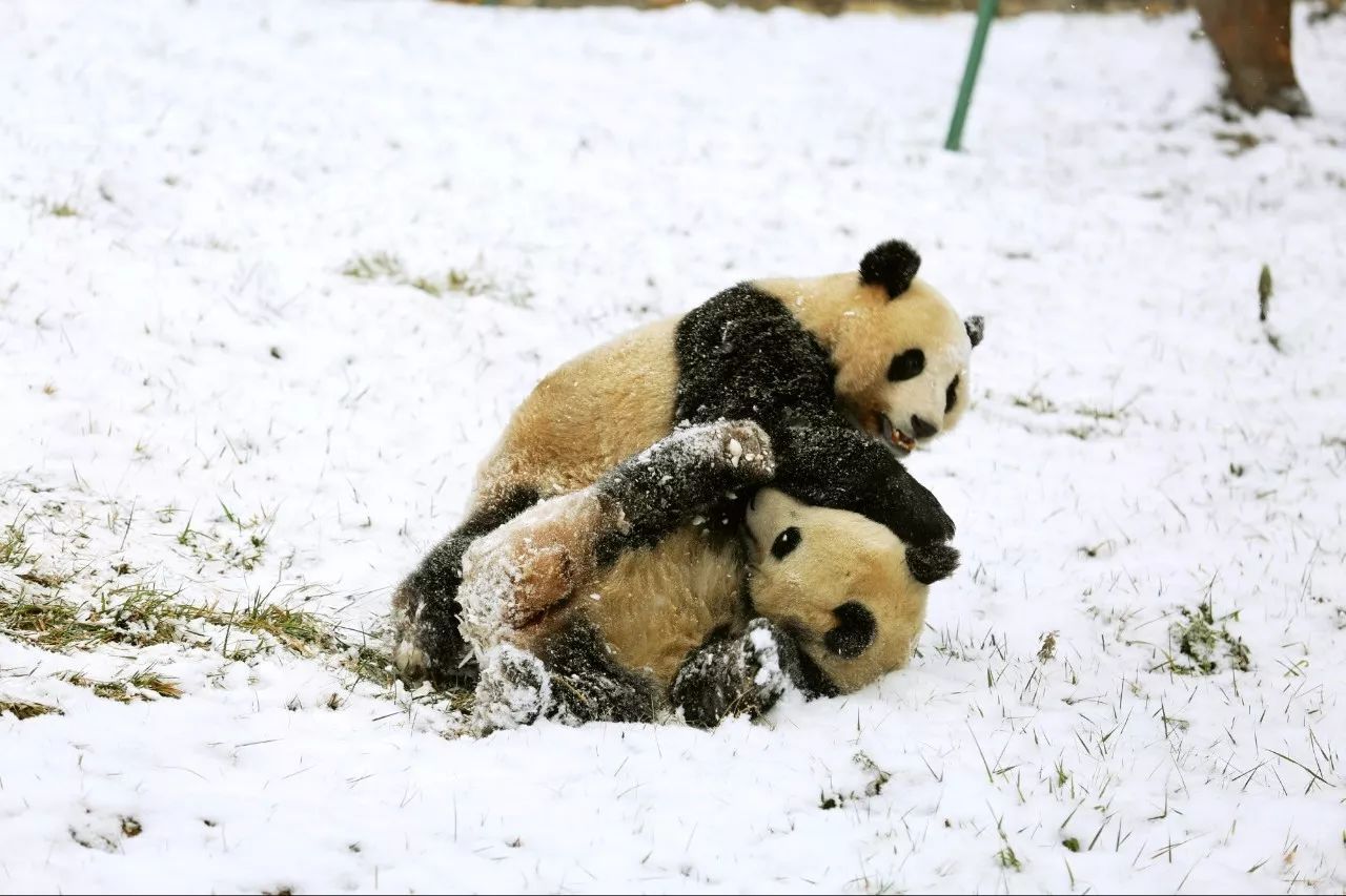 你以为下雪就南方人开心吗?看今天早上刚出炉的动图,卧龙宝宝雪地上掐架,这才是释放天性,今天谁也管不了。哈哈哈哈……