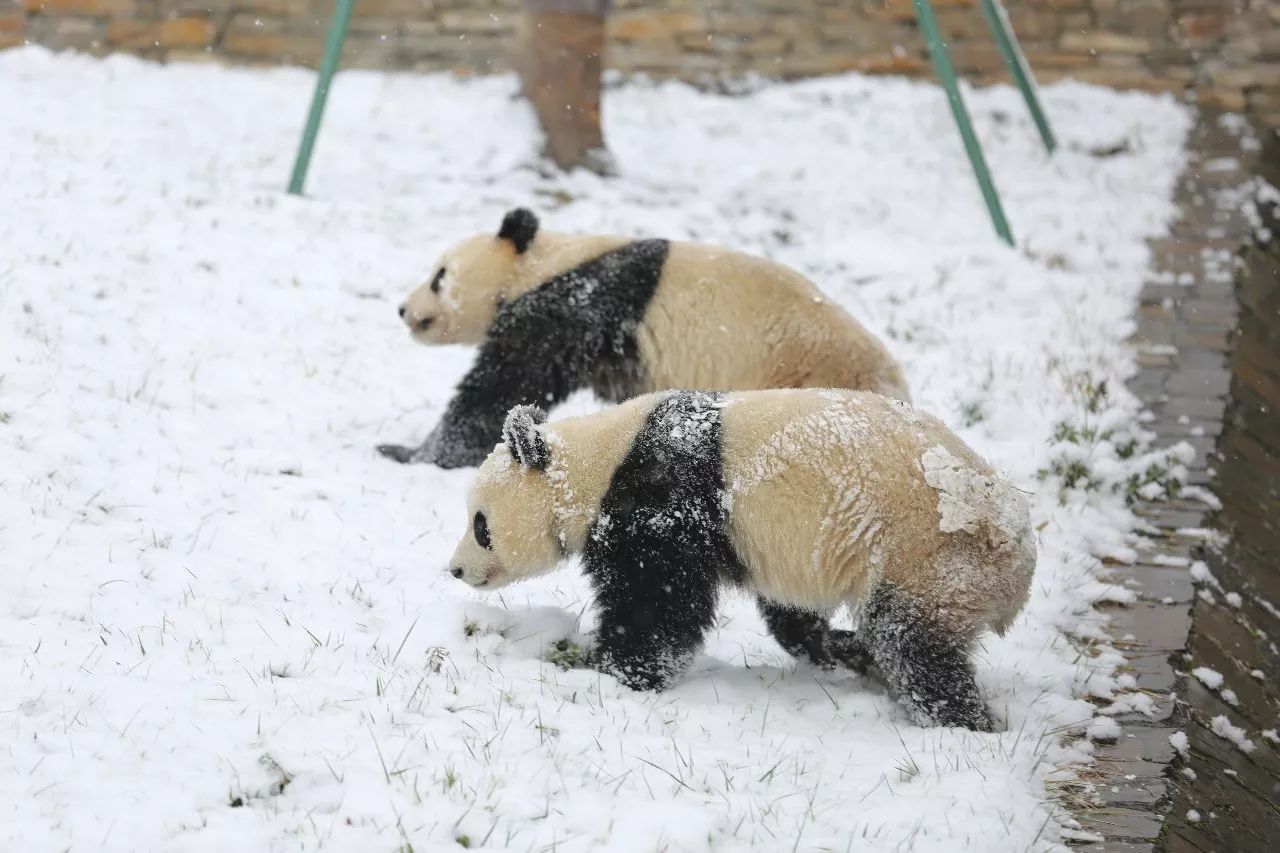 瑞雪兆丰年,2018年好年初始,一大早熊猫就占据了有利位置,进行了一场“拉锯战”。