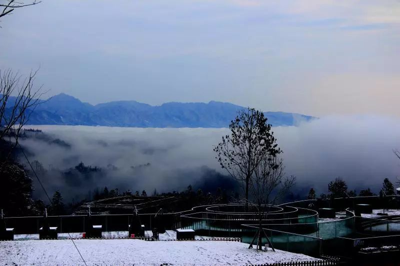 看到图你以为是林海雪原哇?只能告诉你,这是“卧龙版林海雪原”,皑皑白雪装点着卧龙园区。距离成都就2个小时,赶紧出发吧。