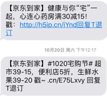 比如:京东到家作为一个1小时送达的生活服务平台,当合作商家有大力度的活动时,会以短信形式及时通知之前买过的或者商家周边一定范围的用户!这种方式可以让用户第一时间了解商家最新活动,促进成交。