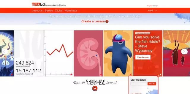 Lessons Worth Sharing. TEDed 是 TED 的姐妹篇,专注于分享一些能让你直接学到什么的视频, 是一个集视频、字幕、交互式问答为一体的开放式课堂视频网站, 视频分三个模块: Series、Subject和YouTube ,视频都挺有趣。