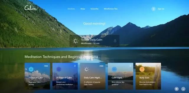 Calm 的背景有田野、小溪、海浪、雨、山水等可选,并为每幅背景配备了相应的背景声音。Calm 准备了 2 分钟、10 分钟和 20 分钟长的放松时间,可供我们自由选择。