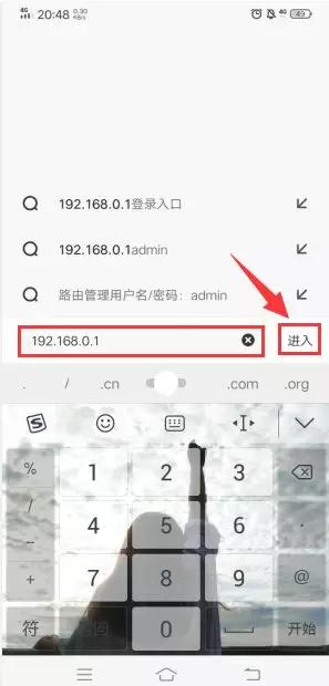1.在手机上打开浏览器,在地址栏输入『192.168.0.1』,然后点击『进入』