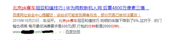 百度网址安全中心提醒您:该站点可能受到黑客攻击,部分页面已被非法篡改!下图所示: