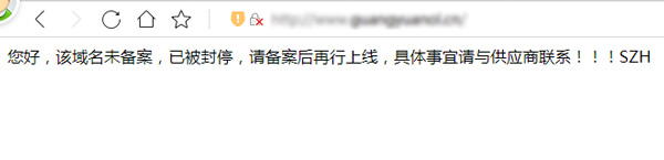 网站封停提示:您好,该域名未备案,已被封停,请备案后再行上线,具体事宜请与供应商联系!!!SZH