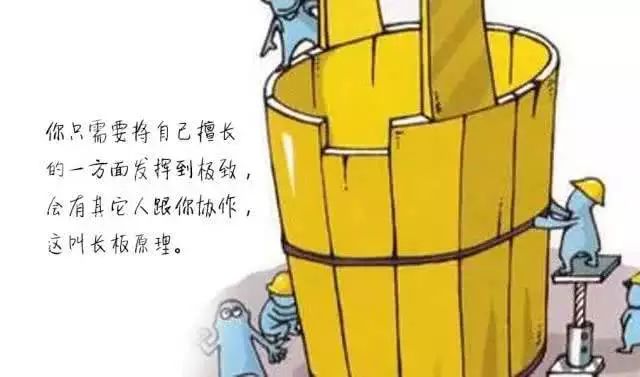 传统的木桶原理不再成立,今后我们将不不在弥补短板,而是在延展自己长处,你只需要将自己擅长的一方面发挥到极致,就会有其它人跟你协作,这叫长板原理。