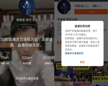 快手全面大整顿,辛巴、散打哥退网,方丈、谢孟伟(嘎子哥)等被直播封禁,诸多前往网红均被封。这也预示着快手直播生态正在加速规范化,打压那些屡屡触犯快手直播红线的主播。
