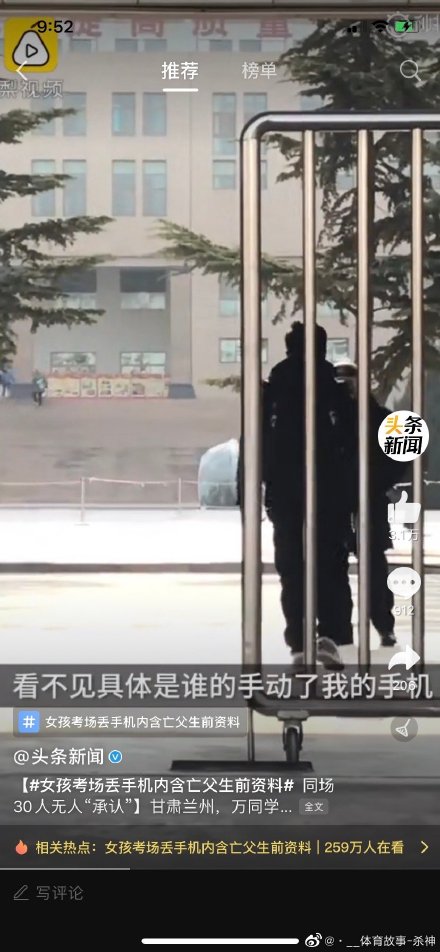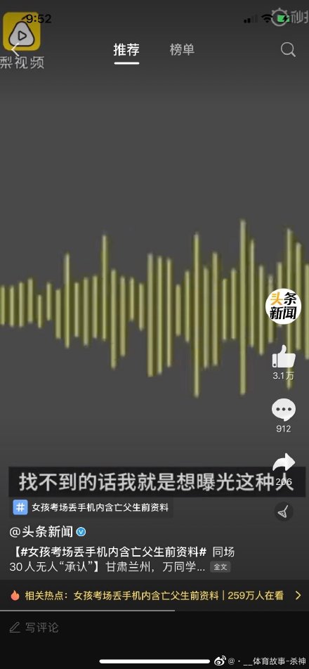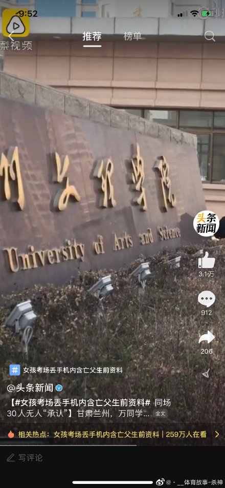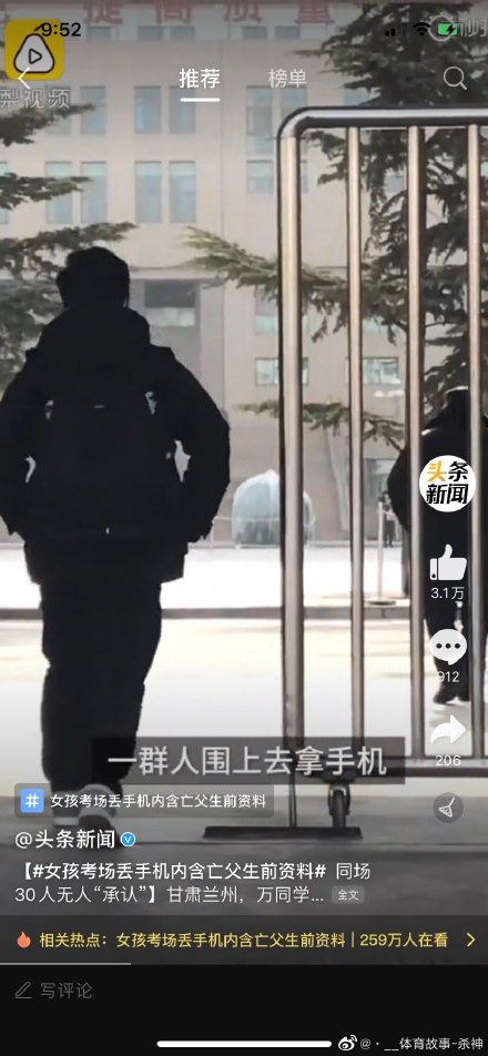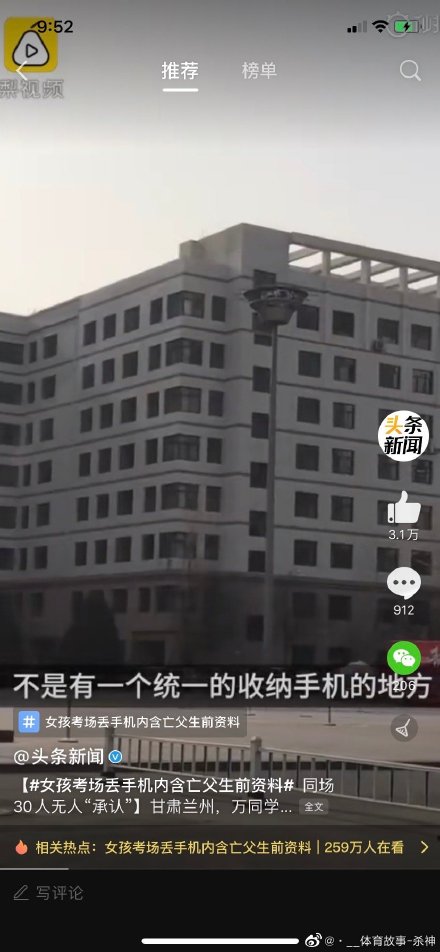 同场30人无人“承认”】甘肃兰州,万同学称她在兰州文理学院参加国家公务员考试时,手机在考场存放袋丢失。调监控发现当时取手机的人较多,分不出是谁拿走的。学校负责人称,同场30位考生无人“承认”,已报警。