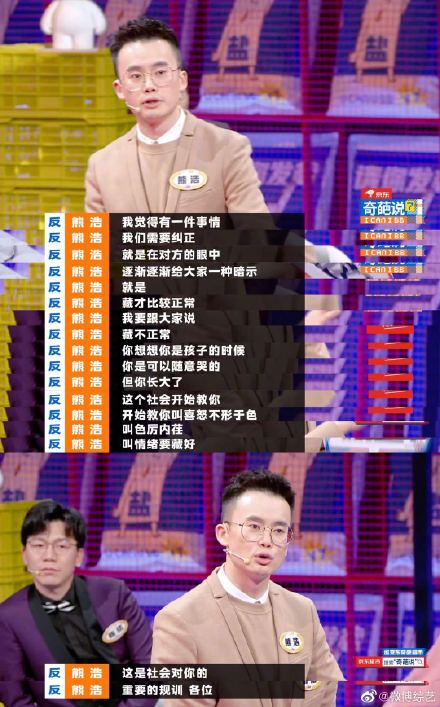 作为正方二辩发言,提到“出走半生归来仍是少年”时表示这是一种幸运,成年人的酷应该是出走半生归来不发一言,崩溃了可以藏起来,才是真正的成年的发言打动了,我们在长大之后,这个社会就一直在教我们喜怒不形于色,要我们把情绪藏好,为什么我们不能打破这种社会的规训呢?我们可以崩溃,我们需要崩溃,我们要做我们自己。