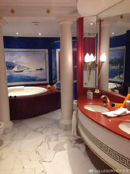 昂贵的黄金在阿拉伯塔随处可见,任何地方都是金灿灿的,连门把手、水龙头、烟灰缸、衣帽钩,甚至一张便条纸,都镀满了黄金。甚至还有被黄金覆盖的酒吧,点一杯饮料,里面都会有金粉。