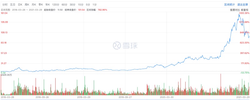 而截至 2021 年 3 月 29 日收盘,B 站报 101.54 美元 / 股,最新市值约 386.5 亿美元,是当之无愧的 “十倍牛股”。