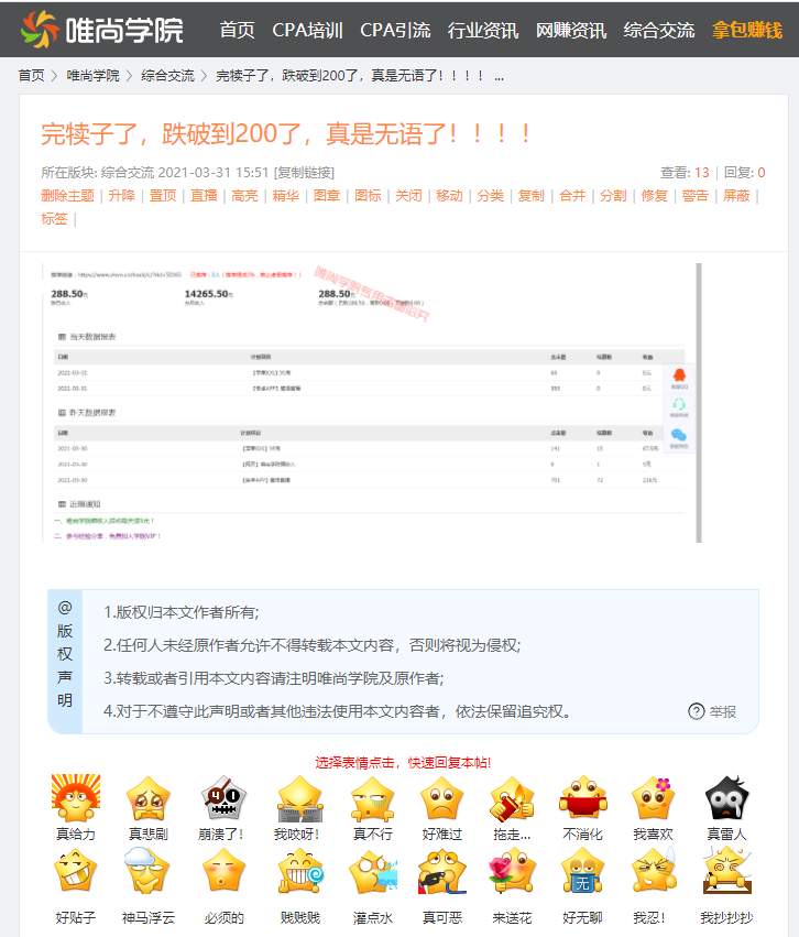 唯尚学院(http://www.visvn.com/[?])论坛网站的综合交流版块发布的帖子都没什么内容,基本上都是唯尚联盟(https://www.visvn.cn/[?])上晒收入的帖子,就一张图和几个字,但是因为每天发的贴比较多,论坛上的人也主要活跃在这个版块,因此帖子的收录效果反而奇好,基本都是当天秒收,反而上面发的正经的干货知识分享的帖子收录不太理想,感觉这里浪费了大量的蜘蛛抓取,导致文章贴的抓取少了,那么要不要把这个栏目nofollow掉,反正这些帖子收录了也没排名,收录了也没啥用,不想让收录这些晒收入的帖子,该不该nofollow屏蔽掉?大家给点建议!