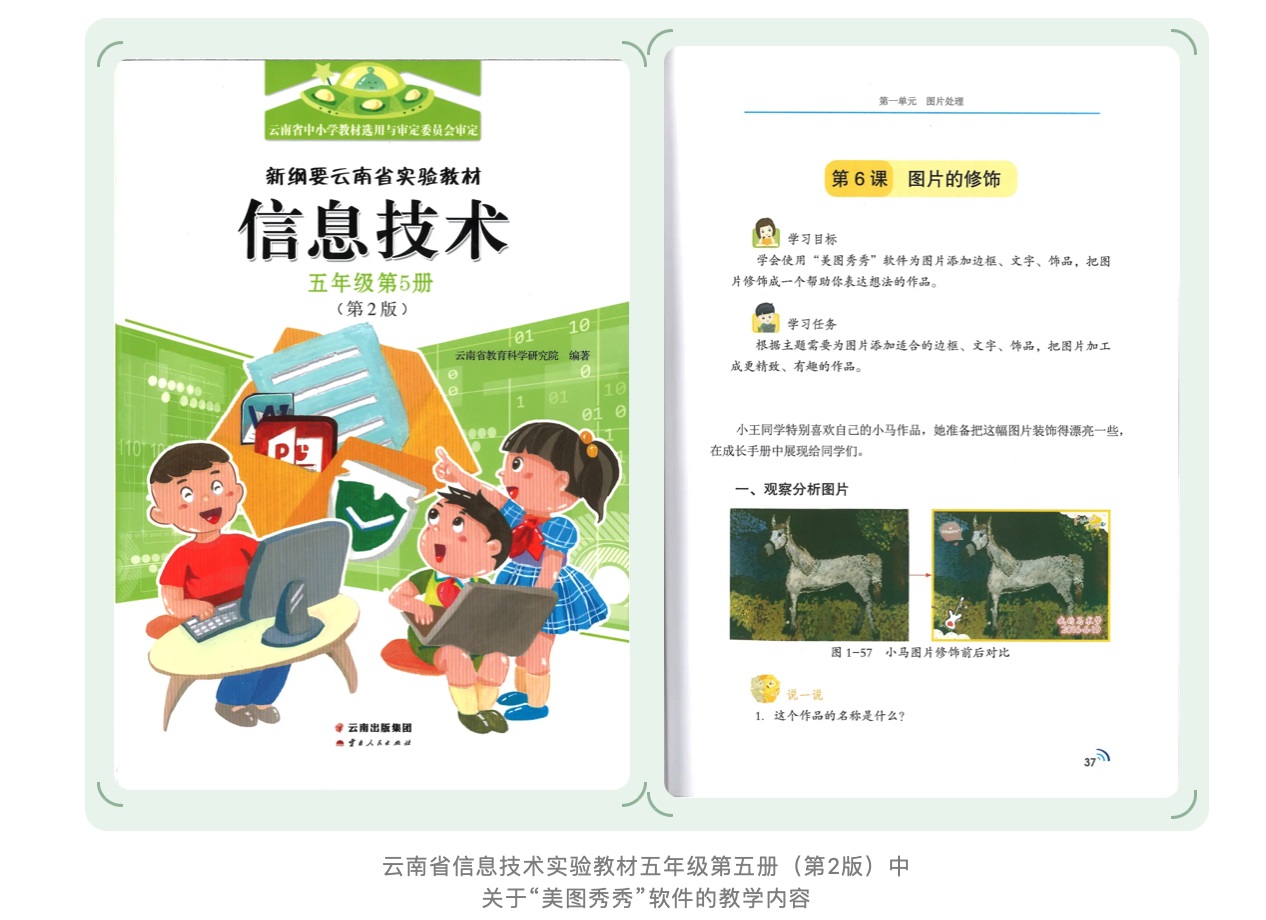 ,美图秀秀(统信 UOS 版)由统信软件和美图公司联合适配完成。现已有学校利用 “美图秀秀”开展多媒体知识教学,并与统信 UOS 结合写进信息技术教材,让老师和学生更广泛地学习自主操作系统和软件应用。