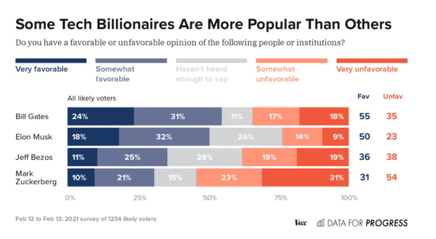 美国人如何看待比尔 · 盖茨、埃隆 · 马斯克、杰夫 · 贝索斯和马克 · 扎克伯格