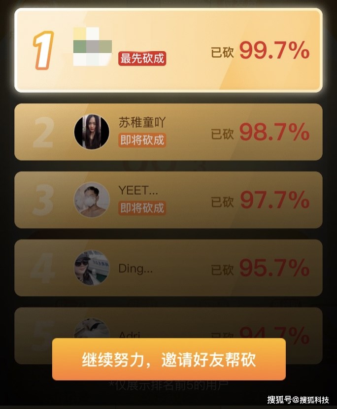具体到本次测试,搜狐科技共计邀请 23 位好友参与砍价,有 20 位砍成,其中有 5 位为拼多多新用户,