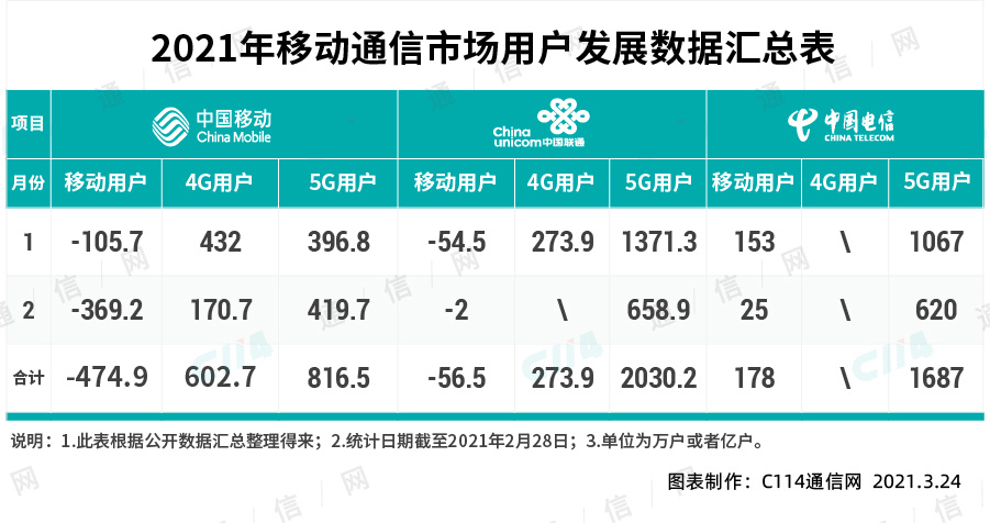 这里提醒大家特别注意,即便在 2021 年,中国电信又实现了的移动电话用户规模唯一的净增长。今年前 2 个月的数据显示,中国电信累计净增 178 万户,而中国移动和中国联通分别负增长 474 万户和 56 万户。