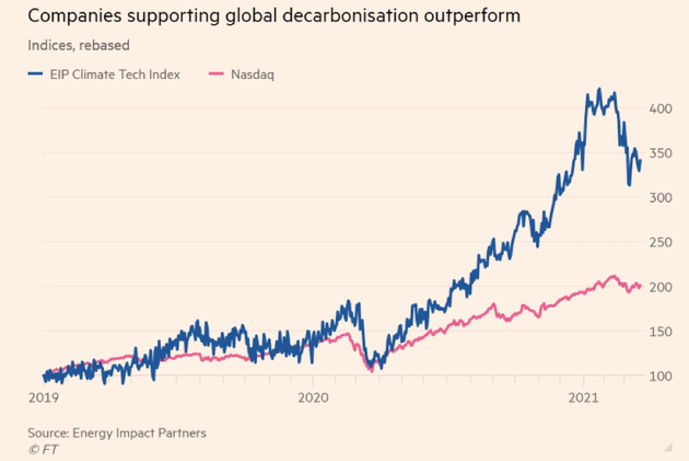 即便如此,在清洁科技股的股价快速上涨之后,分析师已经开始提醒市场警惕即将发生的崩盘。如果损失扩大的话,可能会再一次阻止投资者进入该领域。根据清洁科技投资者 Energy Impact Partners 编制的指数,到今年目前为止,清洁能源技术公司的股价已经上涨 137%,而纳斯达克综合指数的涨幅才 48%。