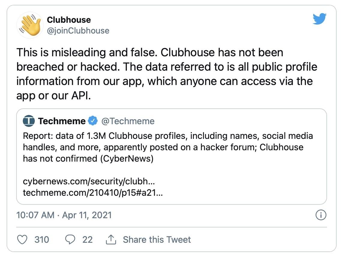 今日,Clubhouse CEO Paul Davison 明确否认,报道是假的,数据没有泄露。