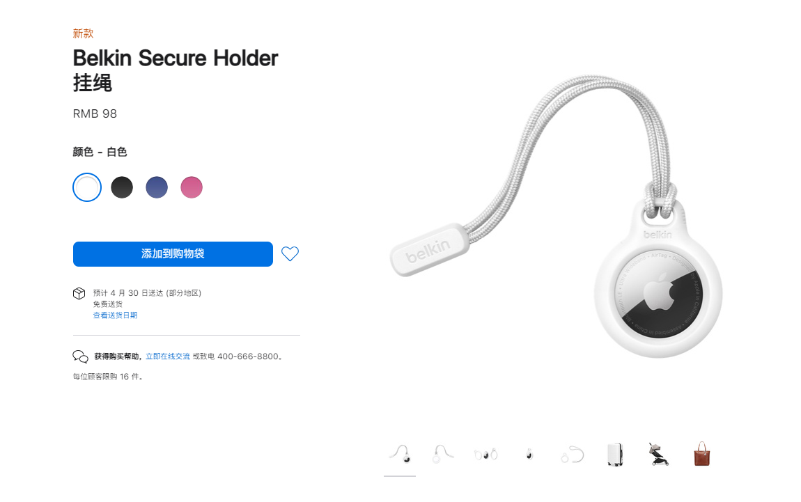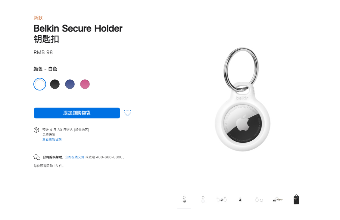 不过还好,著名配件商贝尔金针对 AirTag 推出了一款安全支架,仅售 98 元。