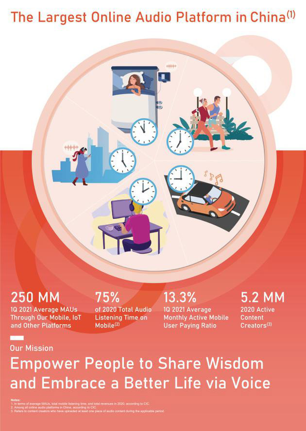 招股书显示,2020 年喜马拉雅营收为人民币 40.5 亿元,同比增长超 50%。2021 年一季度营收为人民币 11.6 亿元,同比增长超 65%。