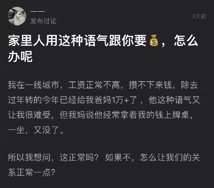工作快两年,前几天在工作地买了套房,付了首付。首付1/3是我自己的存款,2/3是爸妈给我的。普通家庭,爸妈一辈子辛苦打拼,存的钱也不够首付,其他部分都是他们帮我的。我说钱不够我就找同学借,他们坚决反对,宁愿自己舔着脸找亲朋好友借,也不想让我欠同学人情。 每个月扣除公积金,还要商贷3k多。我跟爸妈说,扣除贷款和日常开销,我一年还能存不少,加上年终绩效,首付他们给我的钱,我五年内一定能还给他们。(首付把爸妈积蓄掏空,家里还有一个已经大学毕业,还没正式参加工作的弟弟)结果我被老妈吼了一顿,说我怎么对自己扣扣搜搜的像个守财奴。 难道作为一个女生,不买新衣服,不打扮自己吗。让我该吃吃该喝喝,不要亏待自己。他们没有压力,让我也不要给自己压力。