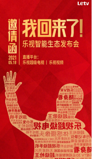 13 日消息 乐视官方今日突然发微博称:我回来了!5 月 18 日举办乐视智能生态发布会,配文“带着全新的自己,带着惊喜和乐视智能生态,带着掀起科技风暴的能量,518 不负期待,大有看点!”