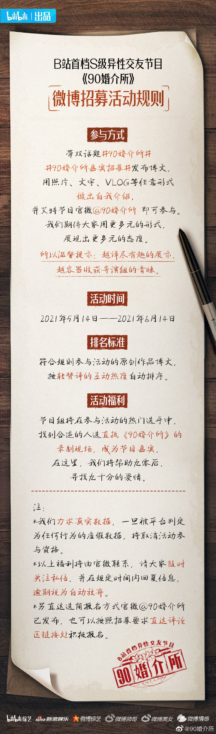 14 日消息 B 站今天宣布了首档 S 级异性交友节目《90 婚介所》,并且正式开始招募嘉宾。