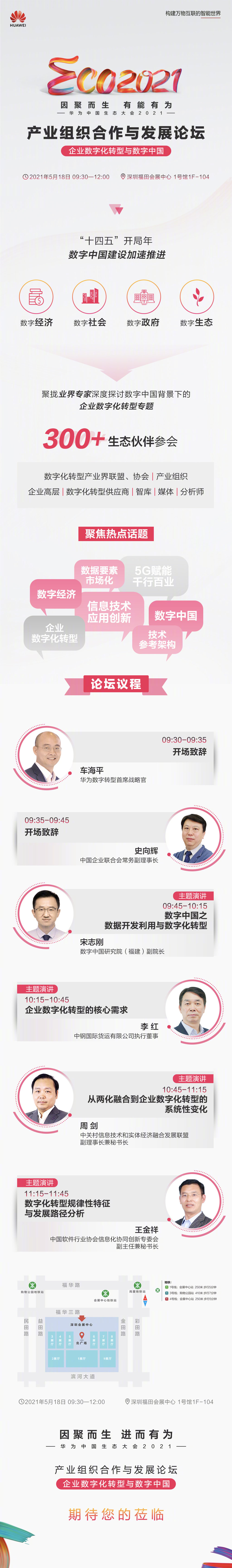 本次论坛将由华为数字转型首席战略官车海平进行开场致辞,同时邀请多位产业人士、专家发表主题演讲,深度探讨数字中国背景下企业数字化转型专题。