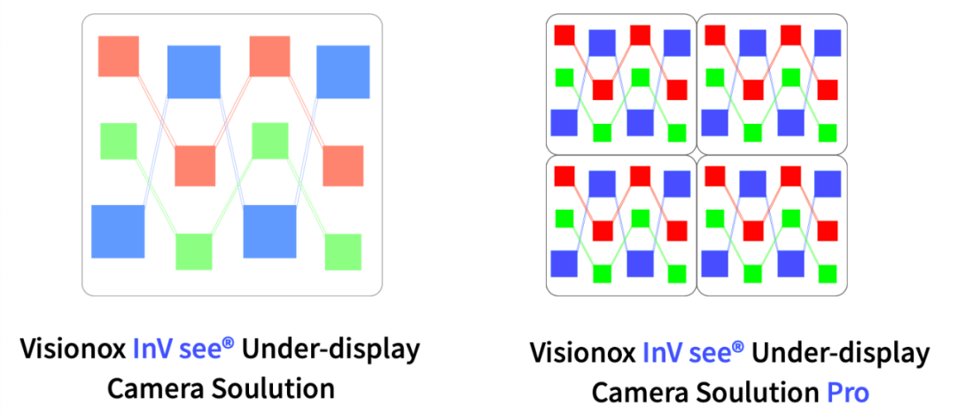 ▲维信诺屏下摄像解决方案 InV see 与 InV see Pro 对比