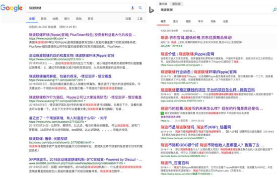 BlockBeats尝试用谷歌搜索相关广告信息,必应搜索瑞博联储,发现百度上没有数字隐币广告,只有必应在京东的第一个药品广告名为“瑞博”。