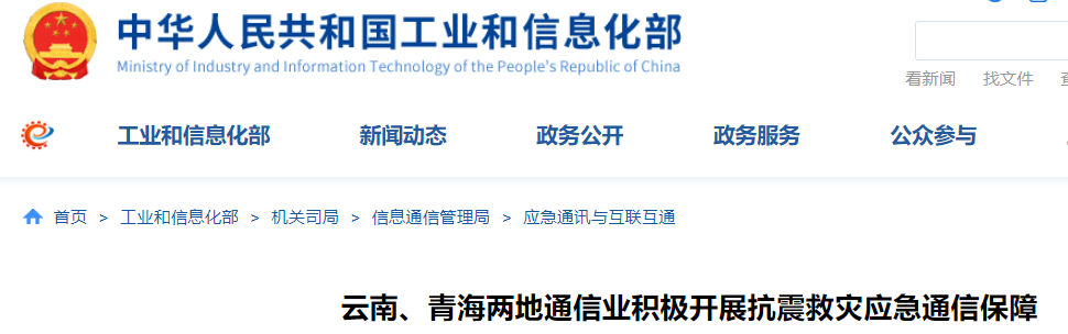 工业和信息化部信息通信管理局第一时间召开视频会议了解受灾地区通信设施受损情况,指导云南省、青海省通信管理局做好当地抗震救灾应急通信保障工作,全力抢修受灾地区通信设施。