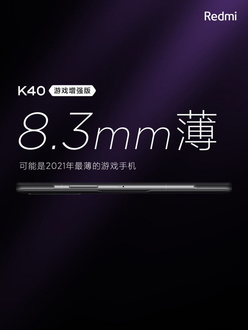 小米在上月底发布了 Redmi K40 游戏增强版,搭载天玑 1200 处理器,机身厚度为 8.3mm,电池容量 5065mAh。