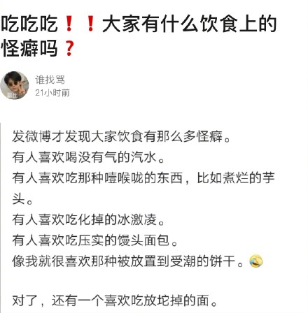 你有什么奇奇怪怪的的饮食小怪癖么,比如喝没有气的可乐..