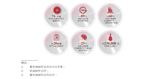 招股书显示,两大变现板块在营收中的占比逐步趋于平衡,2018 年至 2020 年,在线音乐服务在营收中的占比分别是 89.4%、76.6% 和 53.6%,这也意味着,2020 年,社交娱乐服务及其他贡献了 46.4% 的营收。