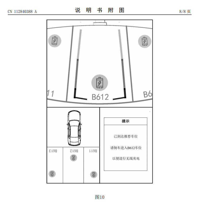 ,专利摘要显示,本申请可被应用于智能汽车、新能源汽车、自动驾驶汽车等:车辆进入停车场时向停车场上报本车信息,停车场服务器将车辆信息与预先存储的无线充电车位信息对比匹配,综合判断当前停车场是否存在可用充电车位。若检索出有多个可用充电车位,选择出最佳车位,并将前往最佳车位的路径和入库方式推送至车端。