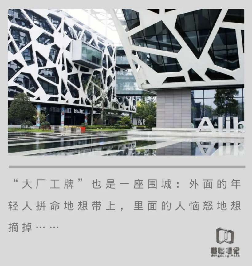有学者分析现在年轻人的心态,觉得他们痴迷互联网大厂“标签”,像极了当年端着搪瓷缸子和铝饭盒,挤进厂里食堂的年轻人,寻求的都是一份人才市场金子塔尖的优越感,而“某某工牌”则是这种优越感幻化出的产物。