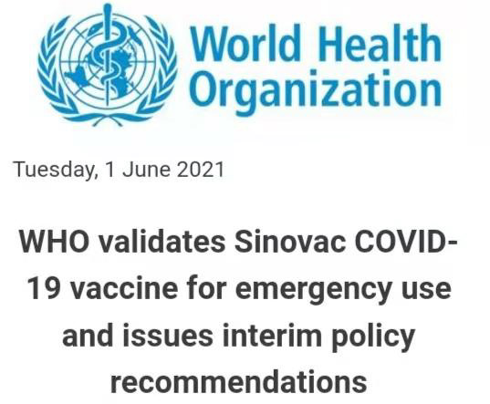 6 月 2 日消息 据央视新闻报道,当地时间 6 月 1 日,世卫组织宣布将中国科兴新冠疫苗列入“紧急使用清单”。