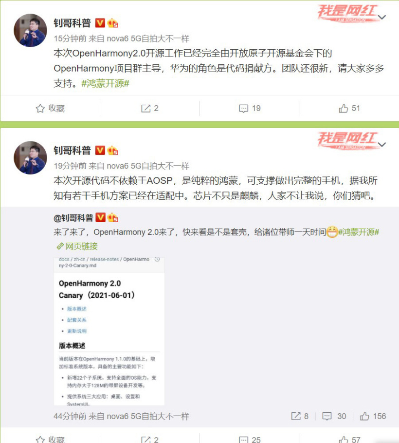 据博主 @钊哥科普 称,本次 OpenHarmony2.0 开源工作已经完全由开放原子开源基金会下的 OpenHarmony 项目群主导,华为的角色是代码捐献方。本次开源代码不依赖于 AOSP,是纯粹的鸿蒙,可支撑做出完整的手机,有若干手机方案已经在适配中。